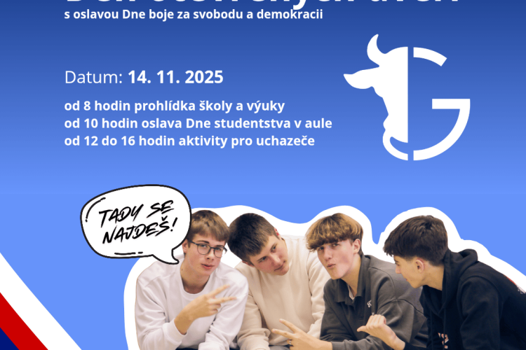 8.11.2025 Den otevřených dveří 2025 Den otevřených dveří 14. 11. 2025 - Pátek Přijď k nám v pátek 14. 11. a budeš moci nasát opravdovou studentskou atmosféru. Od 8 do 10 hodin se můžeš…
