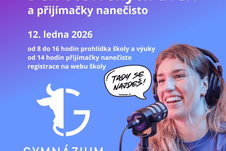 9.1.2026 Den otevřených dveří Den otevřených dveří V pondělí 12. 1. 2026 se u nás koná náš jedinečný Den otevřených dveří. Budeš moci nasát naši skvělou studentskou atmosféru,…
