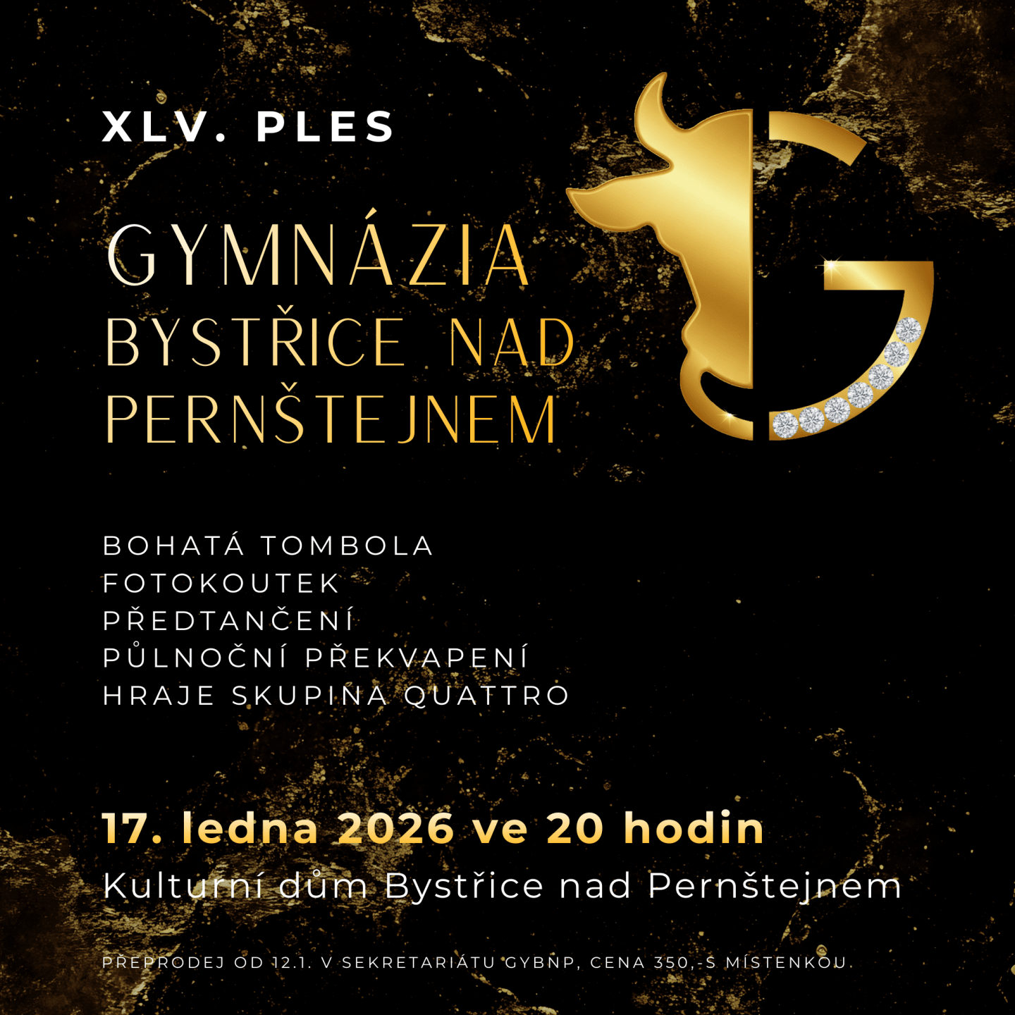 Předprodej: od 12. 1. 2026 v sekretariátu gymnázia.